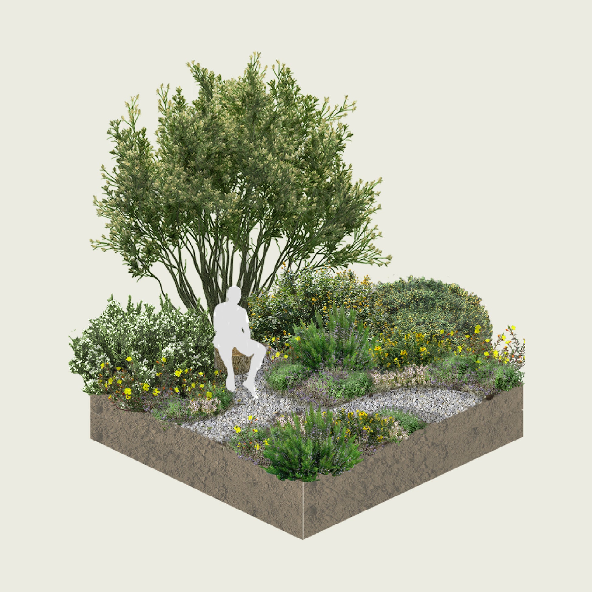 16 plantas nativas de 8 especies distintas, seleccionadas por su resistencia y belleza.
